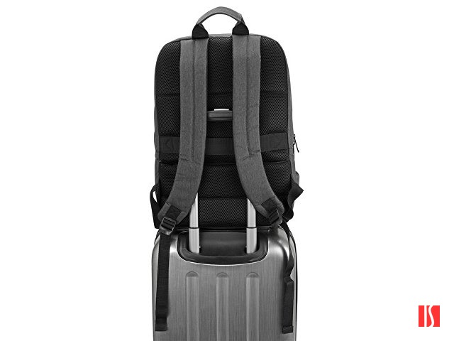 • Ремень на задней спинке рюкзака для надежной фиксации аксессуара на телескопической ручке чемодана или сумки на колесиках.