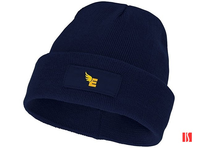 Шапка Boreas с нашивками. Однослойная лыжная шапочка с двойными подвернутыми краями. Вязка в рубчик 1x1 из 100 % акрила. Нашивка из 100 % полиэстера. Заказать с нанесением логотипа от компании «Синтезис».