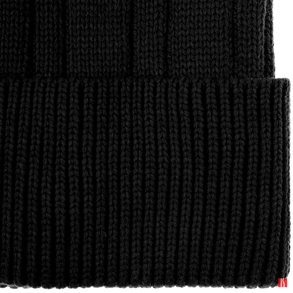 Однослойная шапка фактурной вязки с помпоном и широким отворотом.