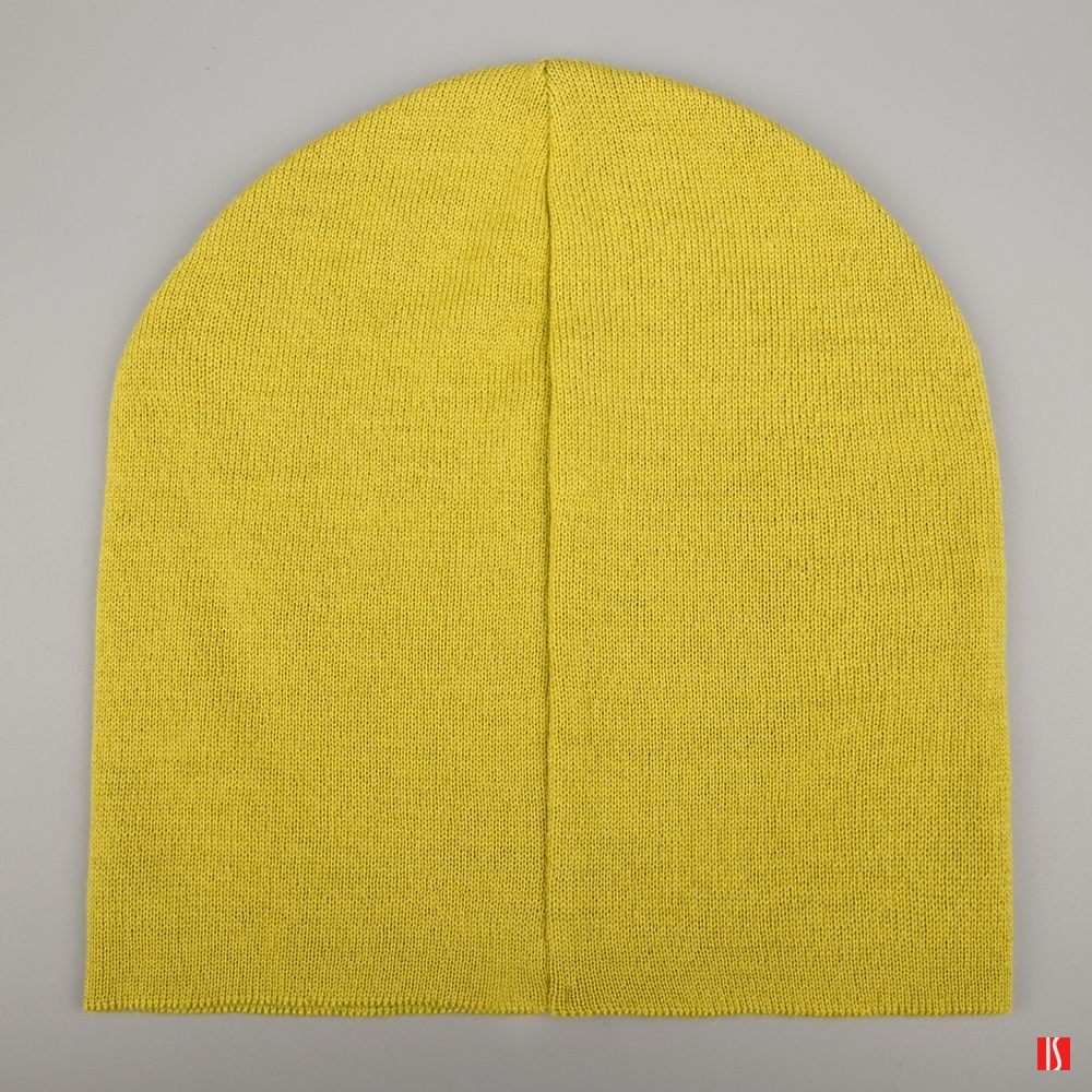 Модель: удлиненная однослойная шапка с жаккардовым узором в 2-3 цвета, без отворота, без помпона.