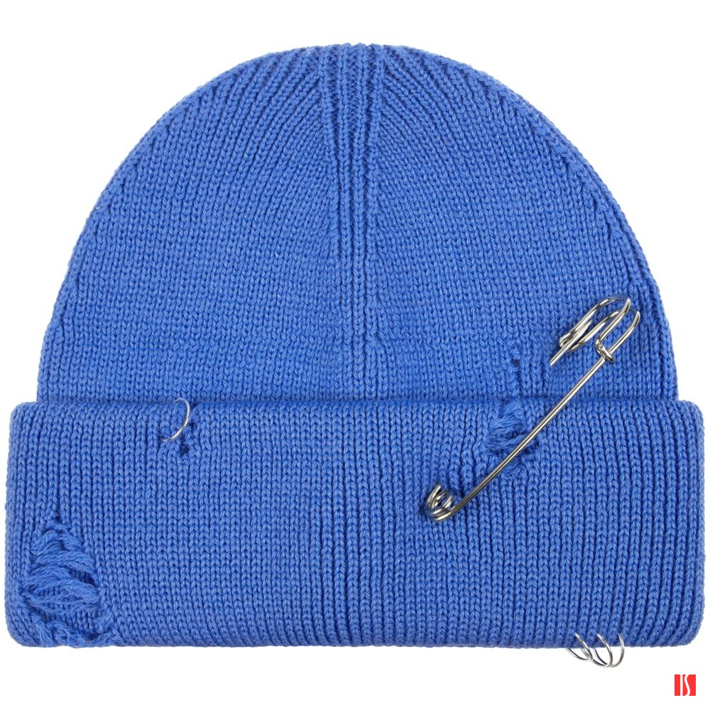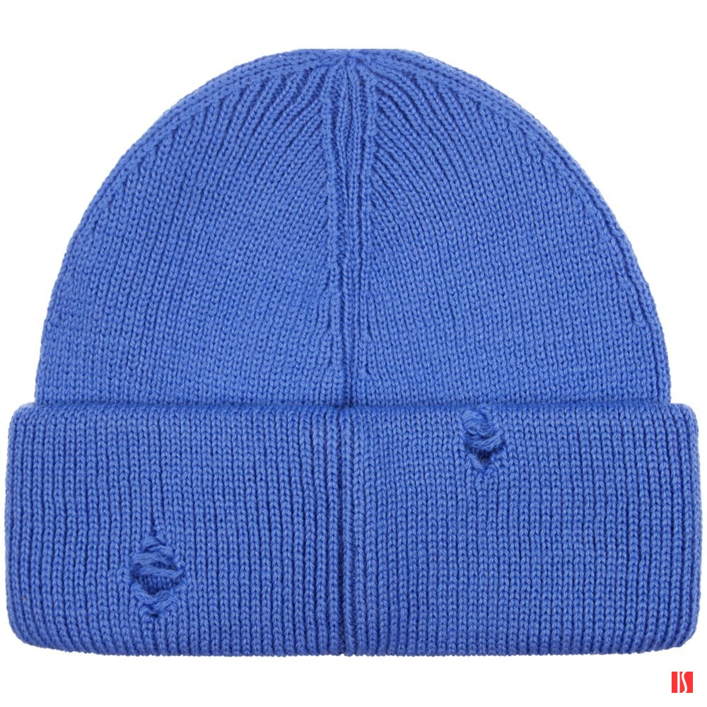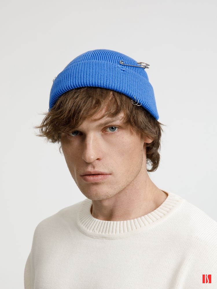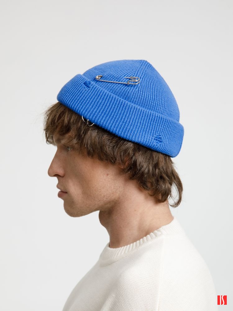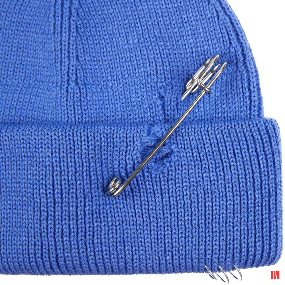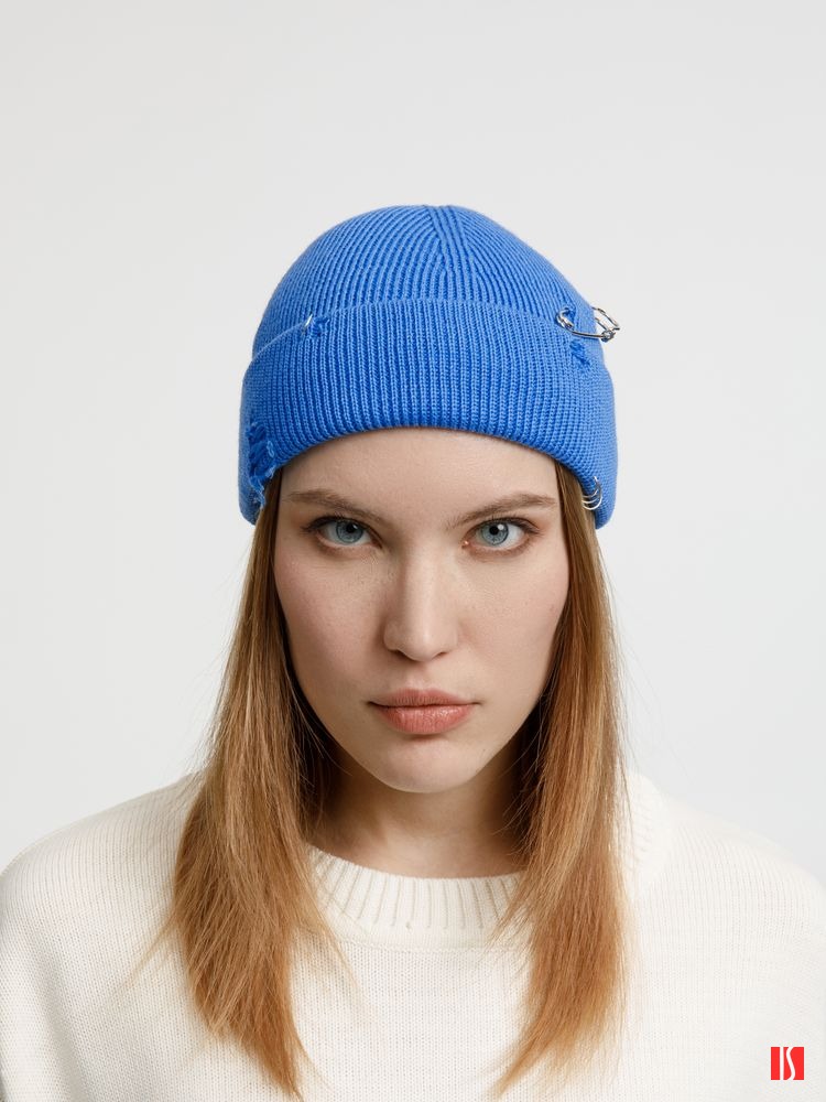 Однослойная шапка бини с рваным отворотом и металлическими аксессуарами для дерзких образов в любом возрасте. Яркий и запоминающийся акцент в стиле гранж.