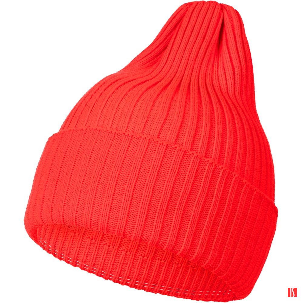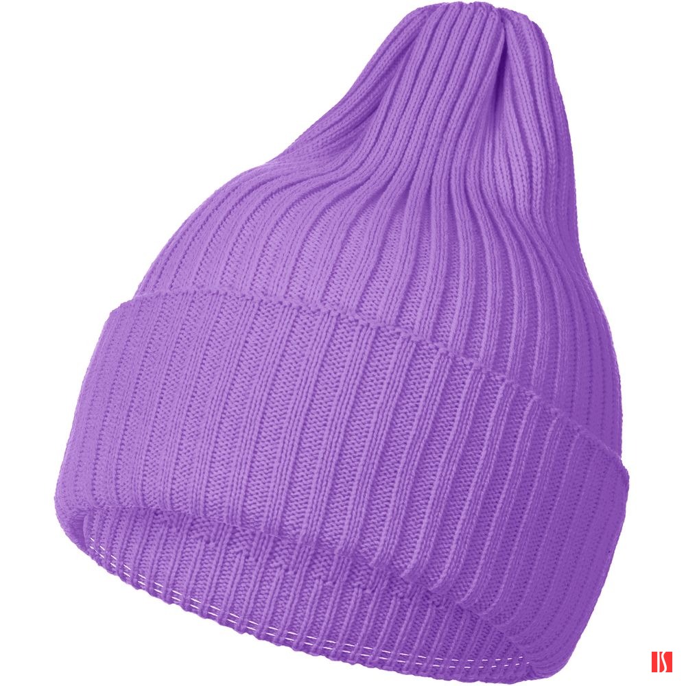 Однослойная шапка фактурной вязки с двойным отворотом.