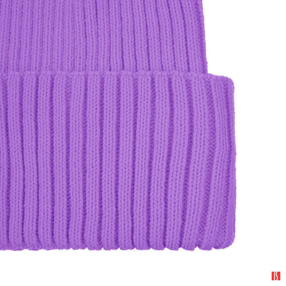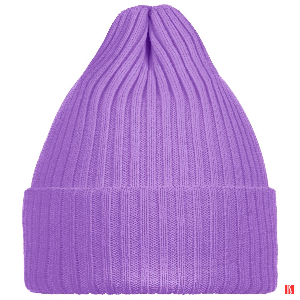 Однослойная шапка фактурной вязки с двойным отворотом.