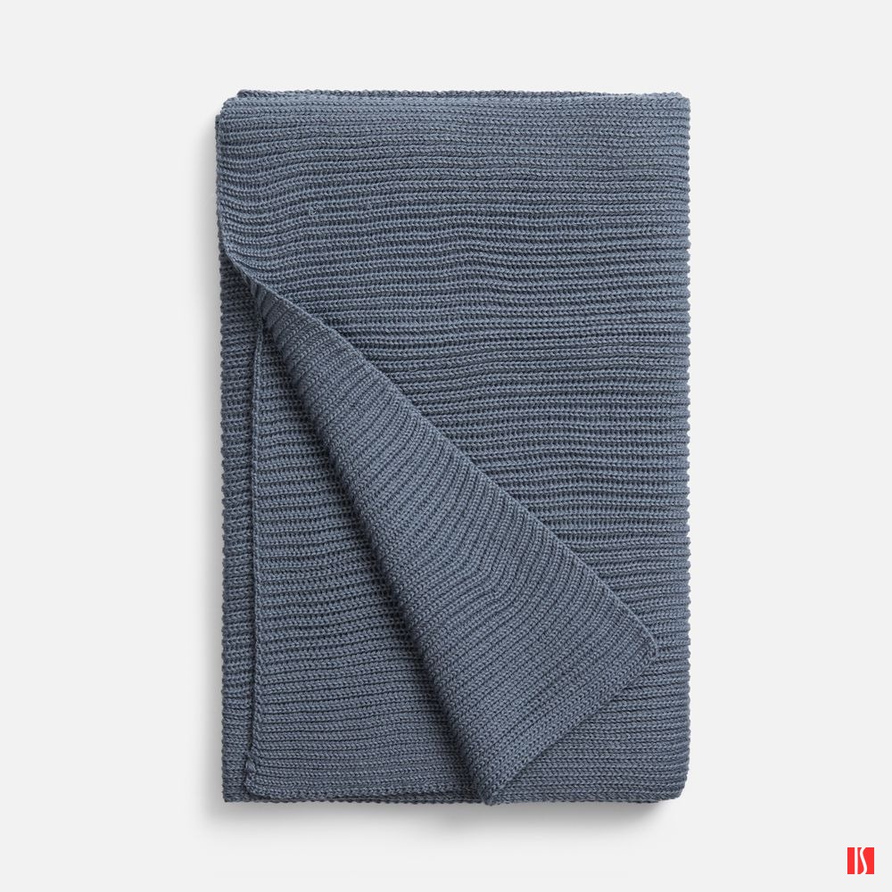 Широкий шарф из мягкой полушерстяной пряжи с выразительной фактурной вязкой создает современный запоминающийся образ.