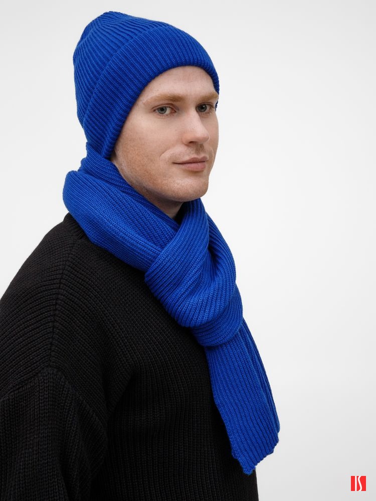 Широкий шарф из мягкой полушерстяной пряжи с выразительной фактурной вязкой создает современный запоминающийся образ.