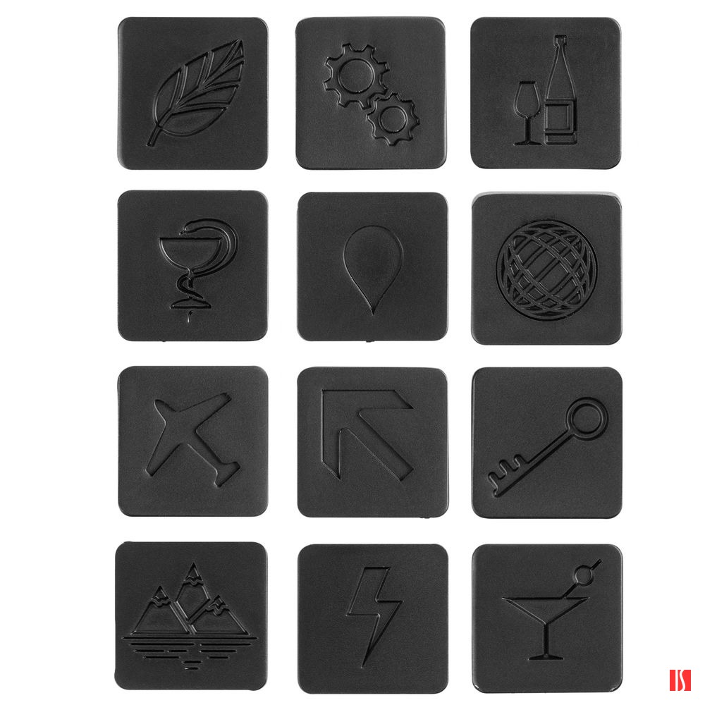 12 универсальных символов можно трактовать по-разному: например, лист может быть признанием экологичности производства, а самолет — пожеланием новых вершин. В каждую картинку легко можно вложить свой смысл — и создавать собственный уникальный корпоративный код.