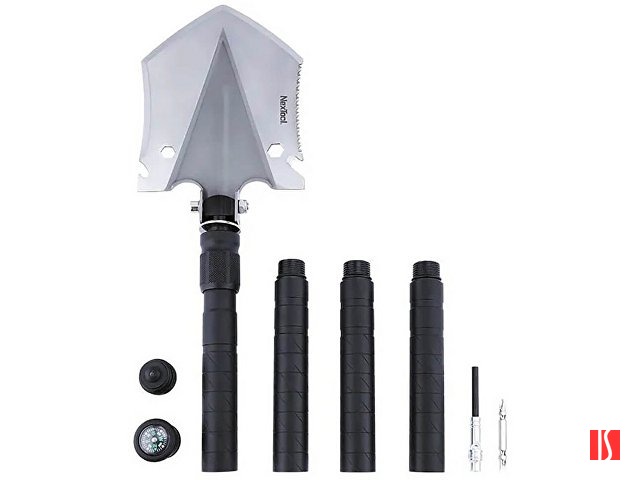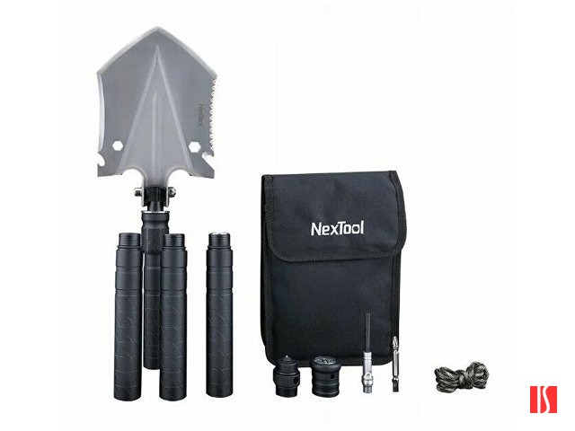 NexTool Multifunction Shovel Big – складная многофункциональная лопата, которая оснащена массой инструментов: пилой, шестигранным ключом, открывалкой, отверткой, огнивом, свистком, аварийным молотком и компасом. Рукоятка лопаты обладает длинной 76 сантиметров и состоит из 4 отсоединяемых частей. Инструмент выполнен из прочного алюминиевого сплава и выдерживает нагрузки до 1800 килограмм.