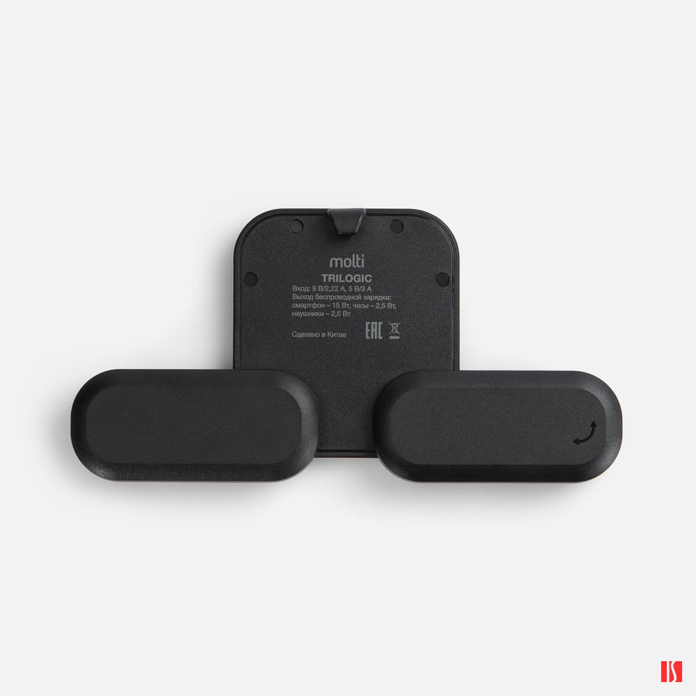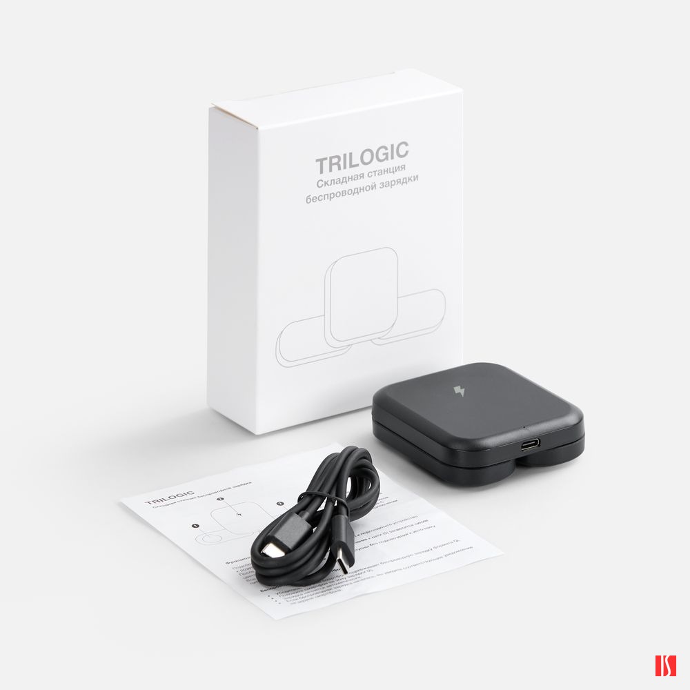 Trilogic — компактное устройство беспроводной зарядки для самых мобильных и современных пользователей. Площадки для зарядки наушников и часов легко складываются и не занимают много места, когда не используются: станцию удобно использовать не только в офисе, но и при разъездах.