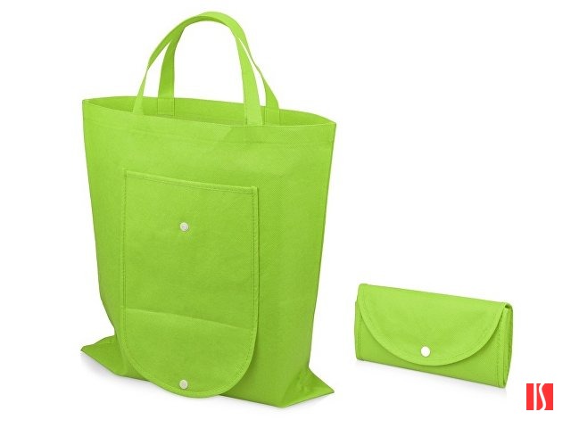 Вместительная складная сумка из нетканого материала с открытым основным отделением и карманом на пластиковой кнопке спереди. Многоразовая сумка- отличная альтернатива пластиковому пакету. Высота ручек 15 см. Заказать с нанесением логотипа от компании «Синтезис».