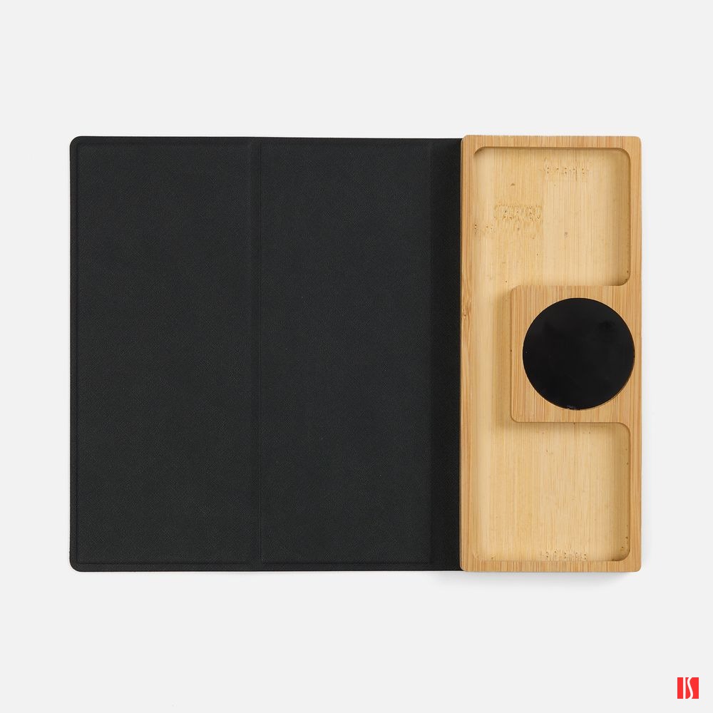 Модуль зарядки, вмонтированный в корпус, поможет оперативно зарядить смартфон без использования проводов, а в специальном отделении удобно разместить ручки, наушники или листочки для записей. С Midstream все необходимое будет под рукой, а порядок на рабочем столе будет всегда поддерживаться без труда.