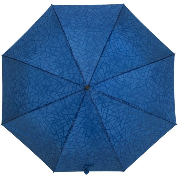 Заказать с нанесением логотипа от компании «Синтезис». На первый взгляд это строгий складной зонт с системой защиты от ветра и удобной прорезиненной ручкой. Но стоит пойти дождю, и на зонте тут же проявляются узоры. После высыхания рисунок исчезает.