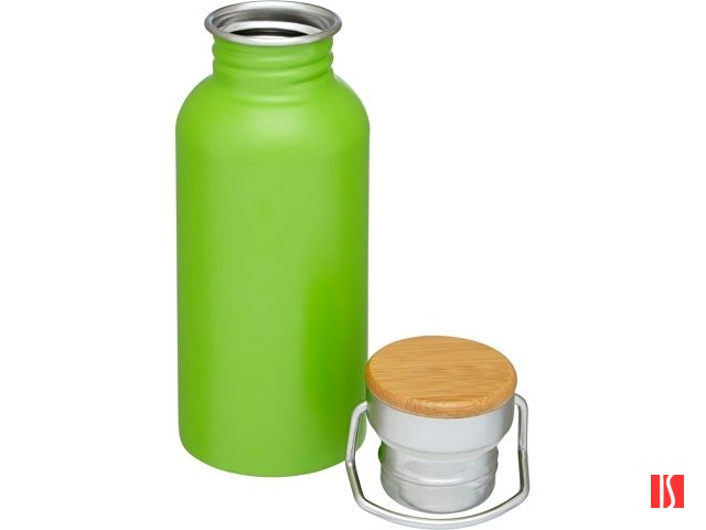 Бутылка из нержавеющей стали с одинарными стенками и съемной крышкой. На крышке есть бамбуковый колпачок и ручка для удобной переноски. Объем 550 мл. Представлена в подарочной коробке Avenue. Заказать с нанесением логотипа от компании «Синтезис».