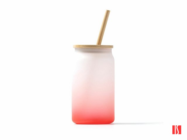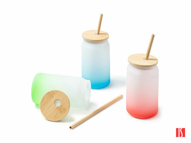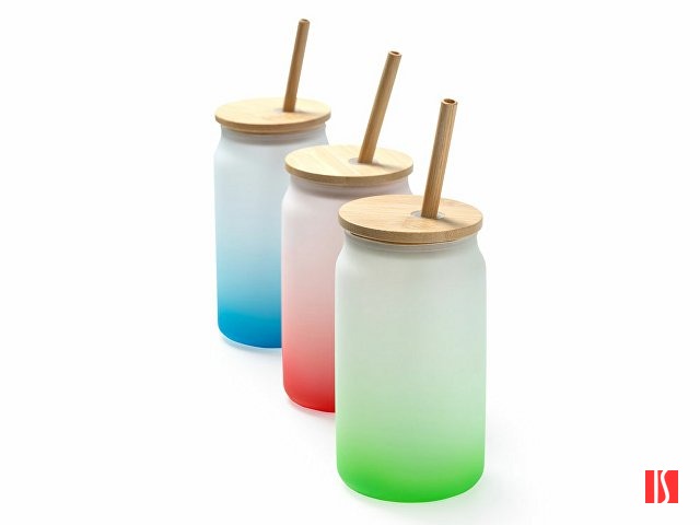 Стакан из боросиликатного стекла с цветовым градиентом. Бамбуковая крышка и соломинка. Емкость 350 мл. Заказать с нанесением логотипа от компании «Синтезис».