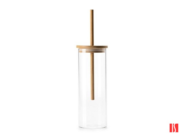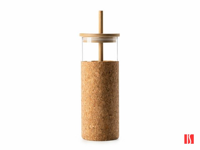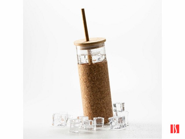 Стакан из боросиликатного стекла с покрытием из натуральной пробки, крышкой из бамбука и соломкой. Объем 450 мл. Заказать с нанесением логотипа от компании «Синтезис».
