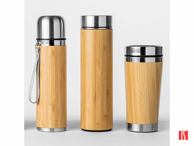 Заказать с нанесением логотипа от компании «Синтезис». Стакан из нержавеющей стали 304 с бамбуковой внешней отделкой. Емкость 500 мл