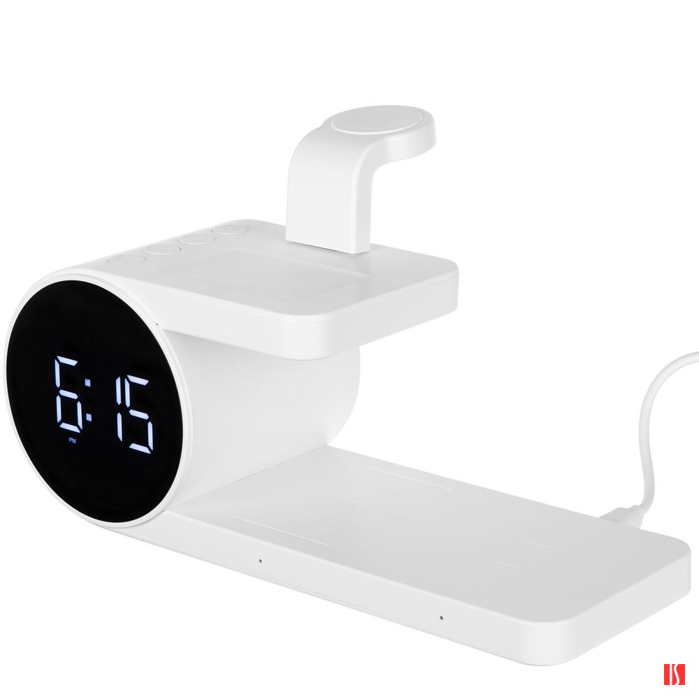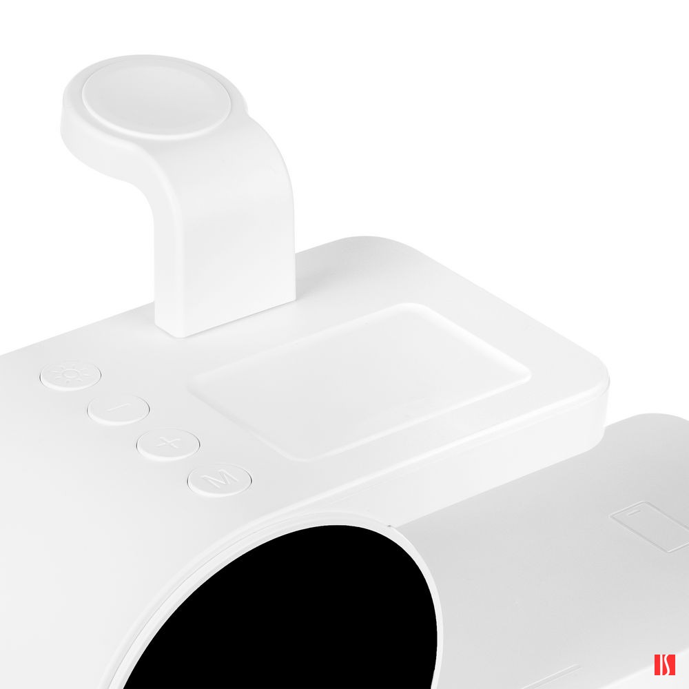 fullStack — технологичное многофункциональное устройство, которое сразу сочетает в себе станцию беспроводной зарядки разнообразных устройств, электронные часы с будильником и ночную лампу.