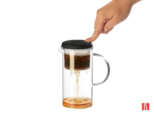 В крышке чайника есть кнопка, при нажатии на которую, заваренный чай переливается в большую колбу.