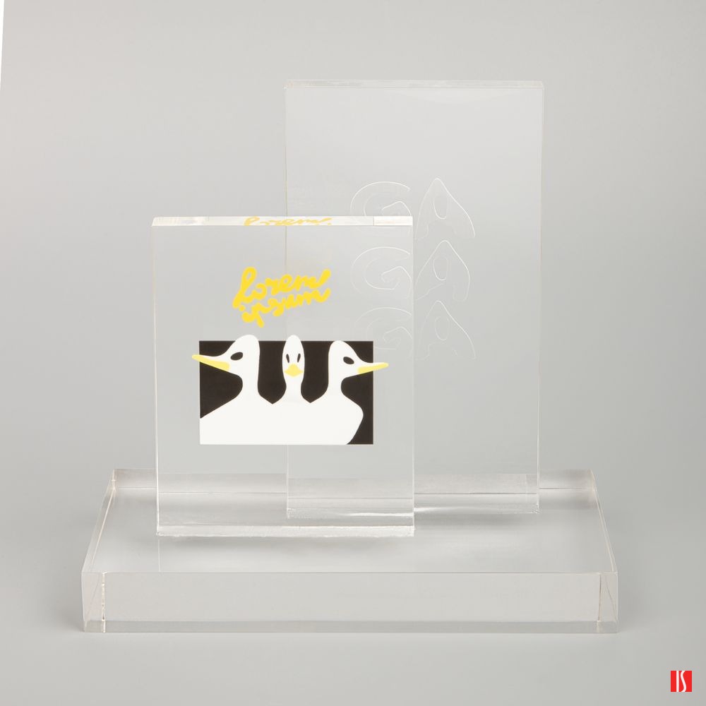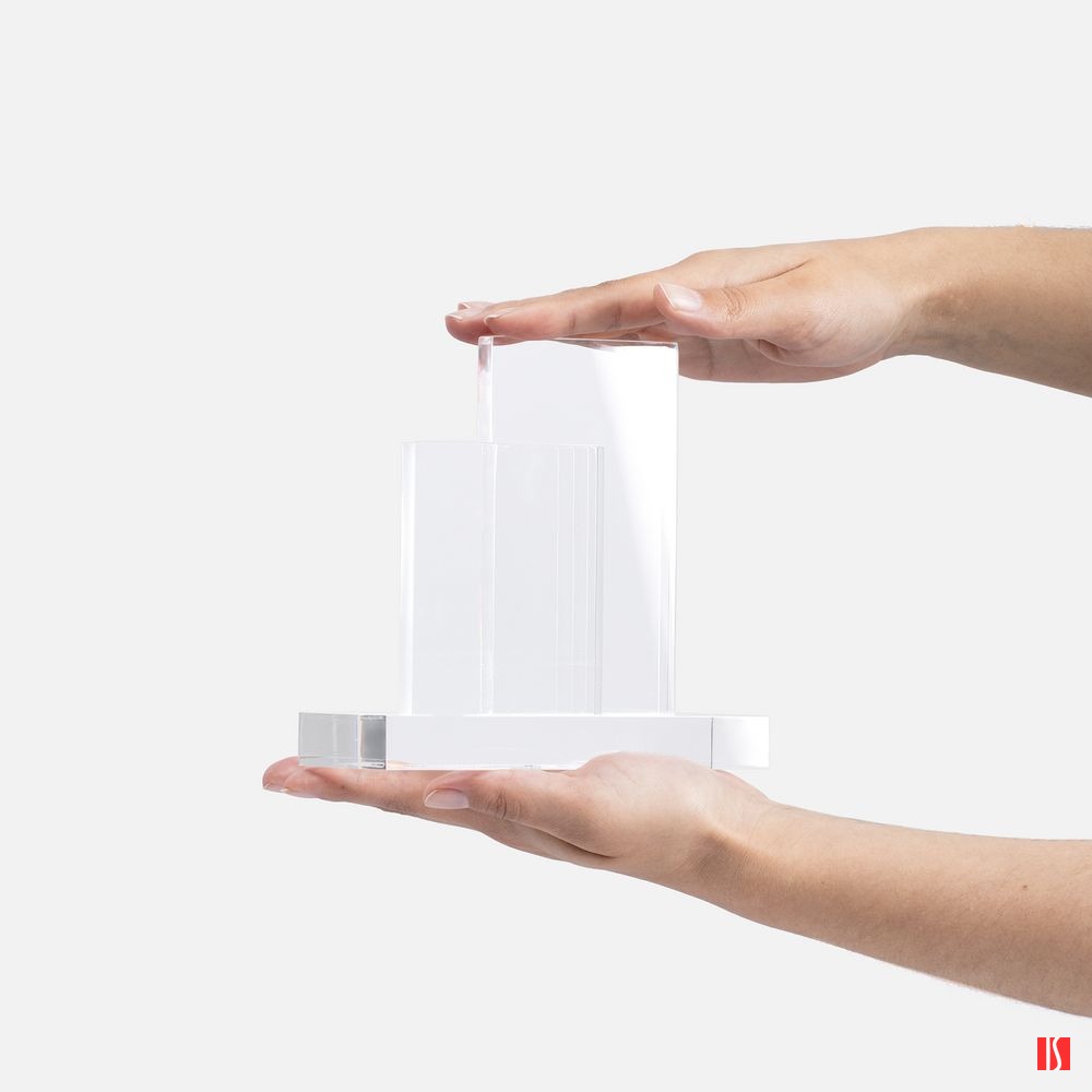 Элегантные линии и прозрачный материал придают стеле Doublet эстетическую привлекательность, позволяя ей гармонично сочетаться с любым интерьером — от офисов до выставочных залов. Акрил (оргстекло) отличается прочностью и легкостью, что обеспечивает долговечность и устойчивость к повреждениям. Благодаря двухуровневой конструкции стела станет прекрасным холстом для идей и творчества и позволит создать уникальную награду со множеством элементов дизайна.