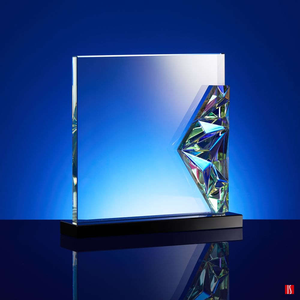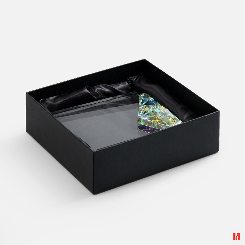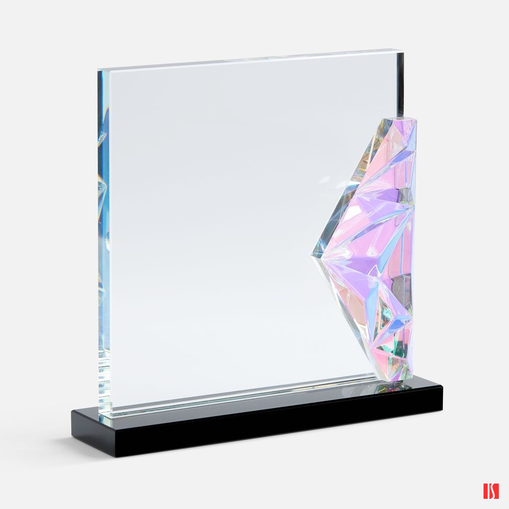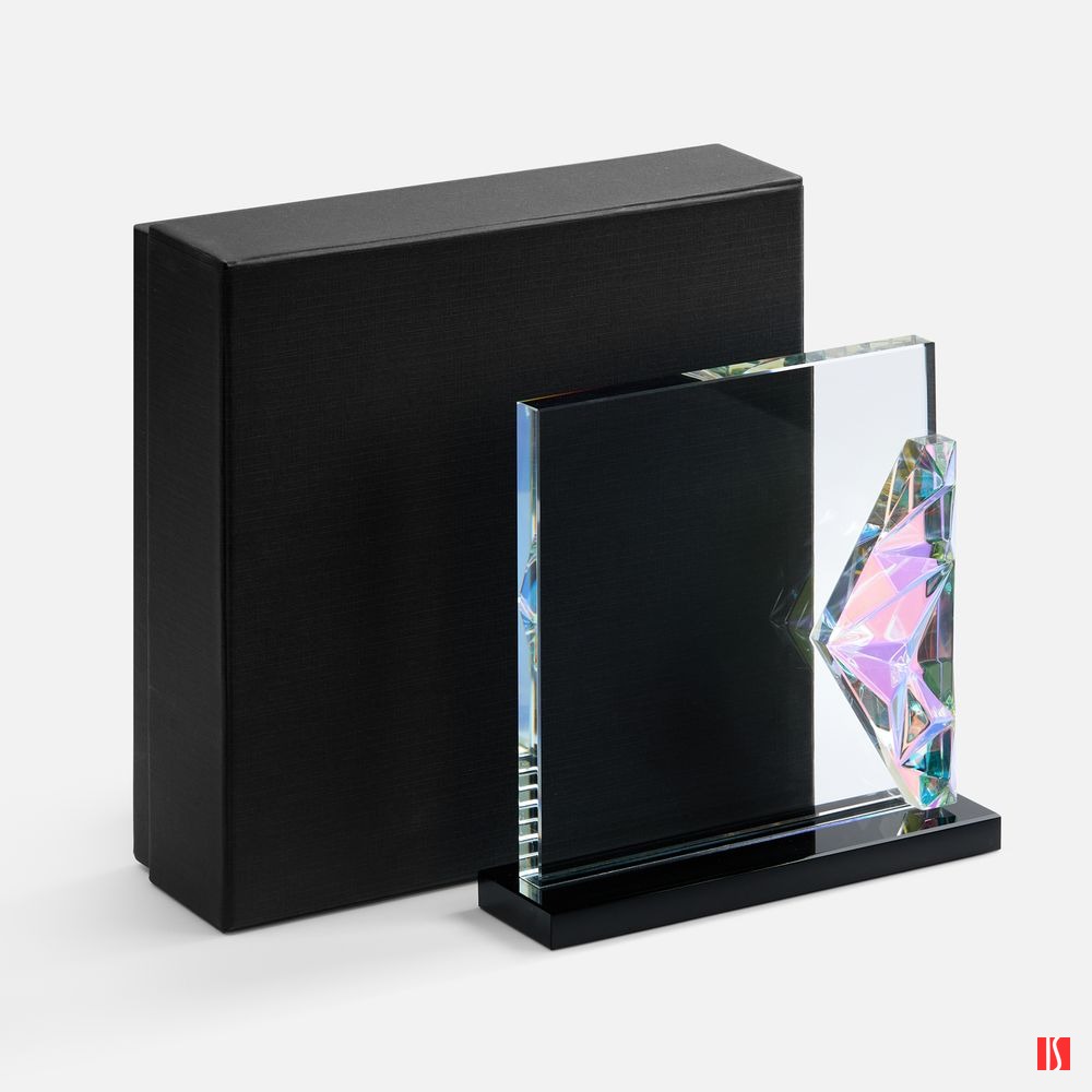 Заказать с нанесением логотипа от компании «Синтезис». Evergleam — оригинальное исполнение традиционной стелы с эффектной цветной вставкой. Эта переливающаяся разными оттенками объемная деталь, словно какой-то фантастический кристалл, добавляет привычной награде магии и свежести, олицетворяя драгоценность признанного успеха и высокое мастерство самого получателя.