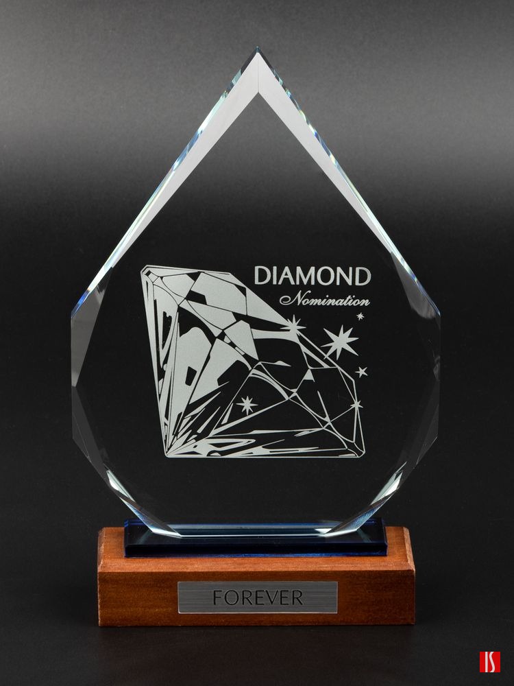 Награда изготовлена из стекла К9, в основе которого лежит оптическое боросиликатное стекло. Эту марку стекла отличает низкий процент посторонних включений, высокий показатель преломления и высокая прозрачность — идеальные качества для изготовления наград премиального уровня.