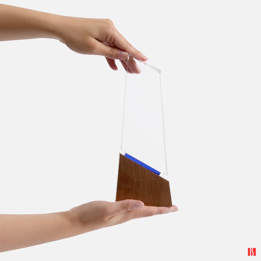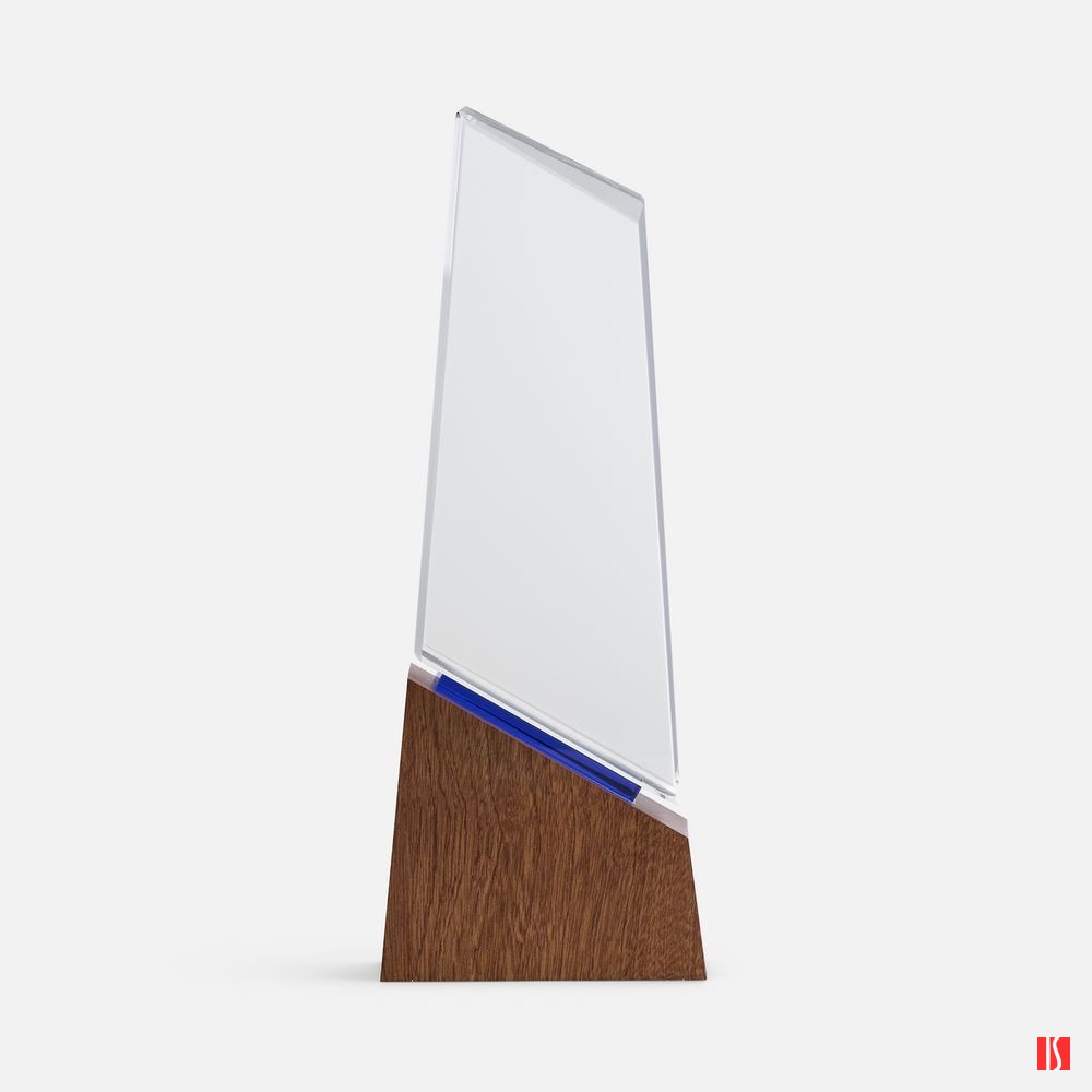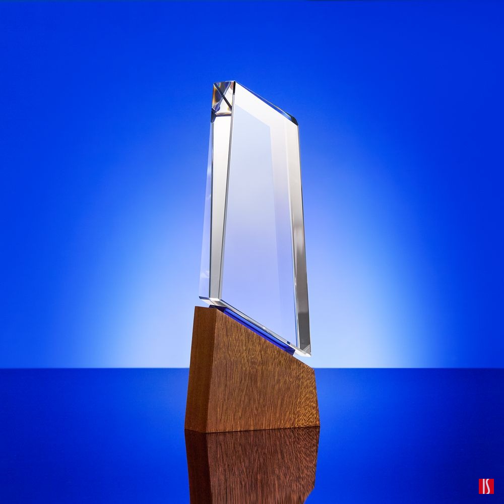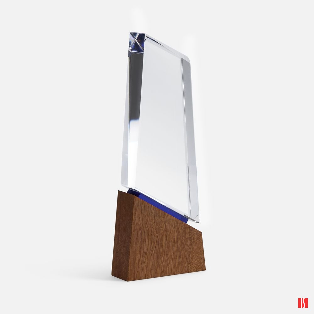Стела изготовлена из стекла К9, в основе которого лежит оптическое боросиликатное стекло. Эту марку стекла отличает низкий процент посторонних включений, высокий показатель преломления и высокая прозрачность — идеальные качества для изготовления наград премиального уровня.