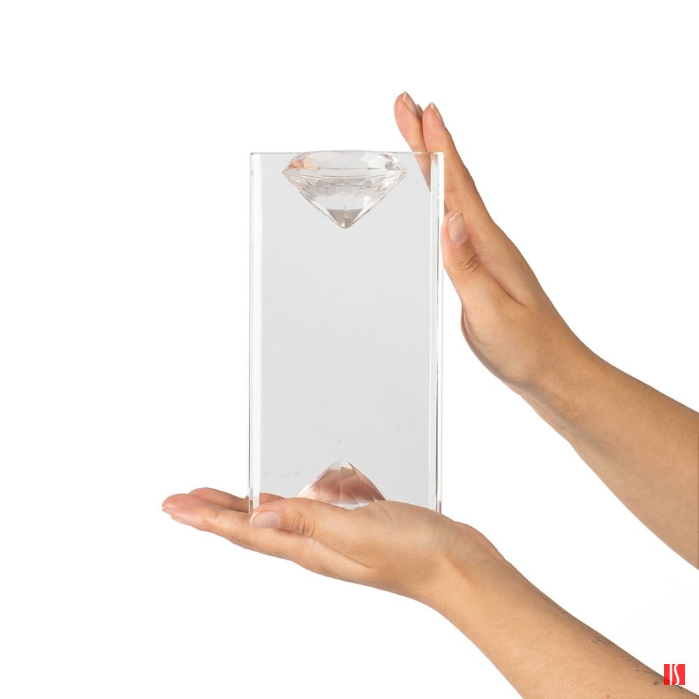 Заказать с нанесением логотипа от компании «Синтезис». Стела Incrystal — воплощение минимализма, приправленного двумя привлекательными акцентами. Крупные детали в форме эффектных алмазов у основания и в навершии образуют гармоничное единство, олицетворяя сильные стороны, устремленность к единой цели и особую ценность получателя награды. Свет красиво преломляется в гранях этих алмазов, создавая приятный визуальный эффект и добавляя стеле оттенок роскоши.