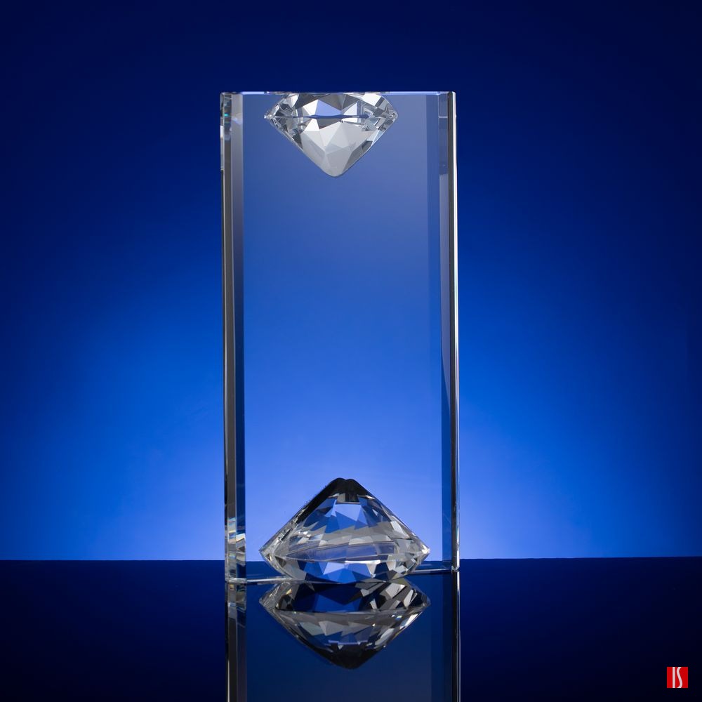 Стела изготовлена из стекла К9, в основе которого лежит оптическое боросиликатное стекло. Эту марку стекла отличает низкий процент посторонних включений, высокий показатель преломления и высокая прозрачность — идеальные качества для изготовления наград премиального уровня.