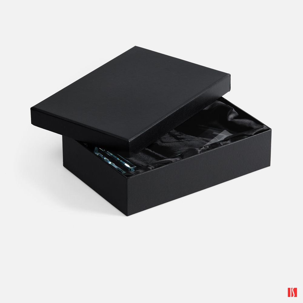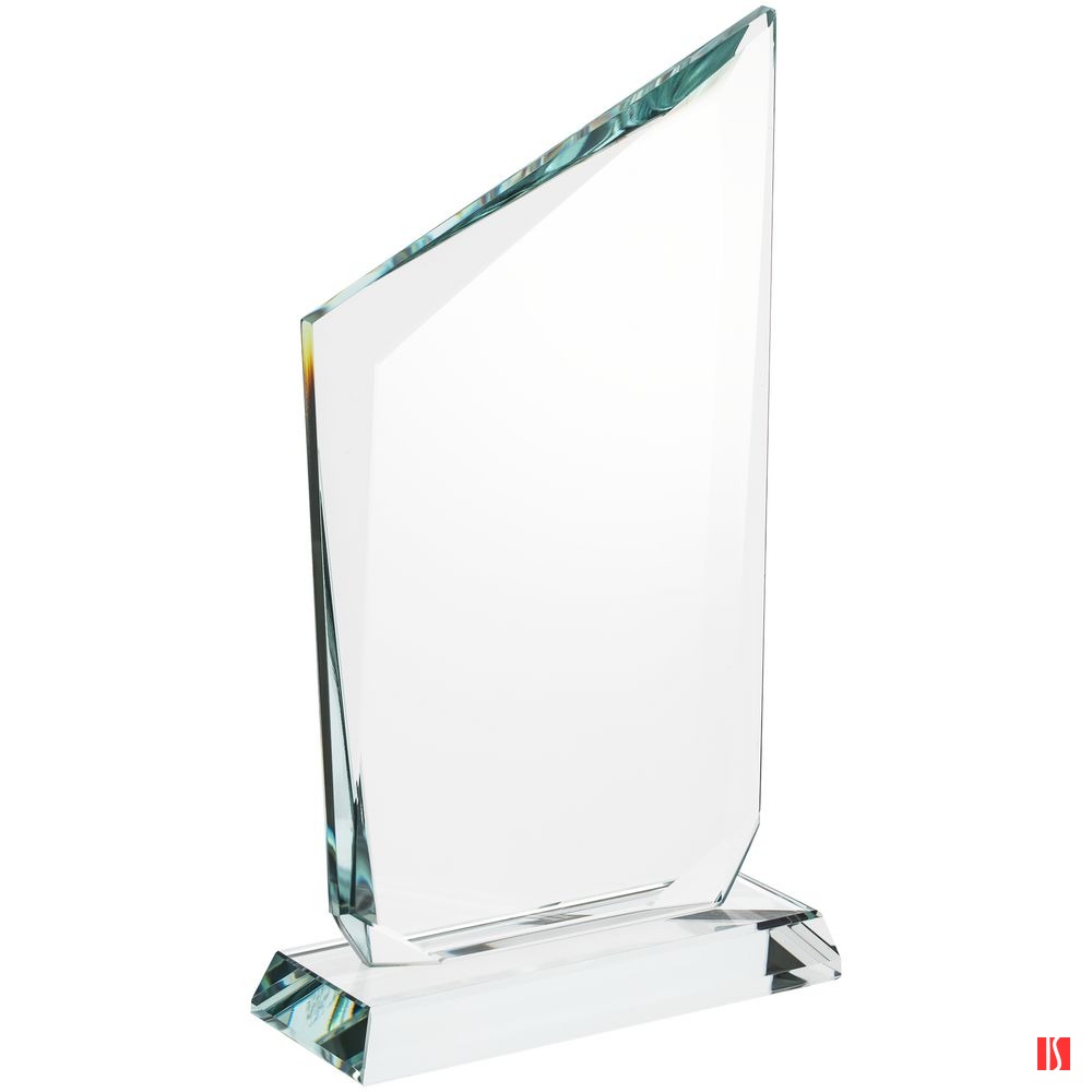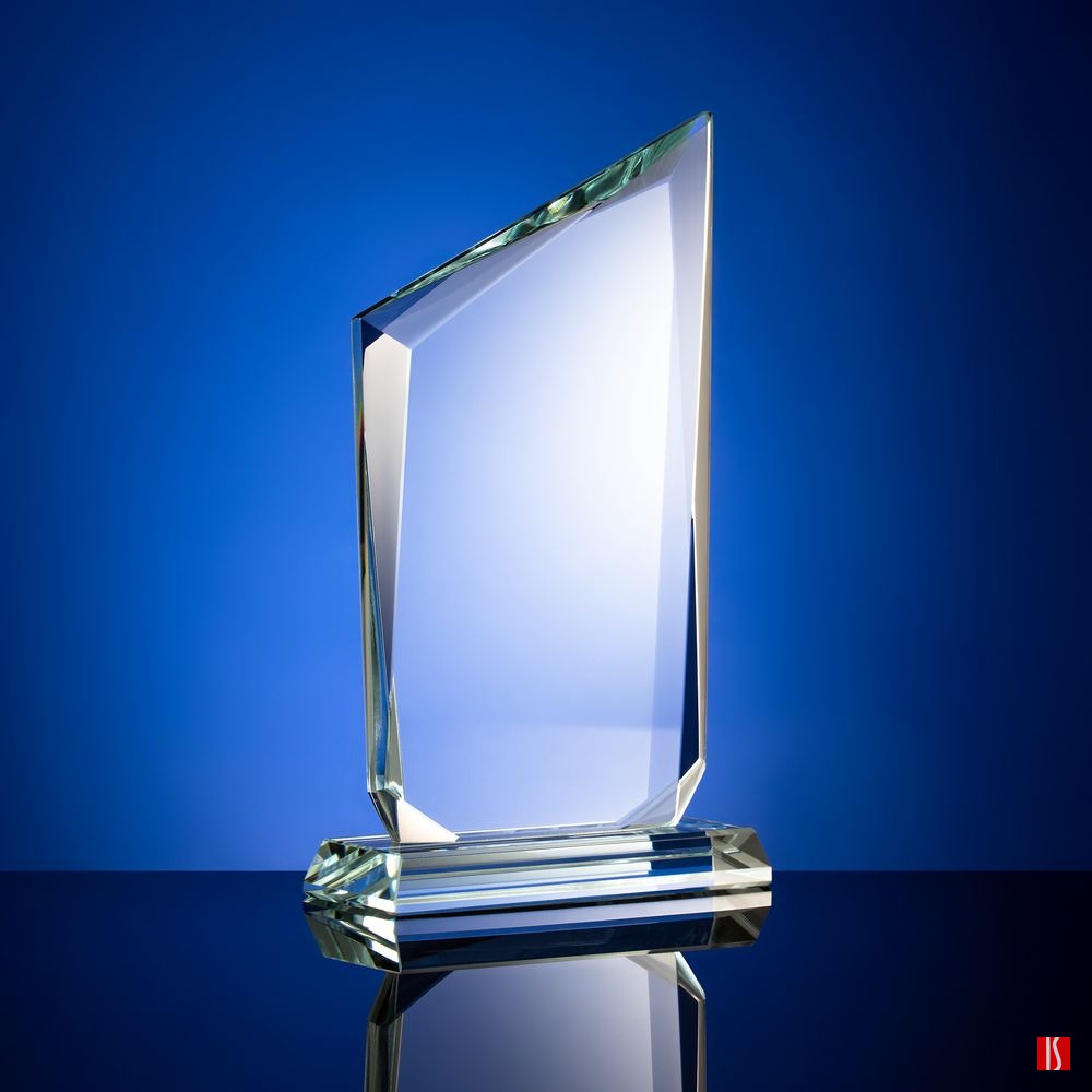 Стела изготовлена из стекла К9, в основе которого лежит оптическое боросиликатное стекло. Эту марку стекла отличает низкий процент посторонних включений, высокий показатель преломления и высокая прозрачность — идеальные качества для изготовления наград премиального уровня.