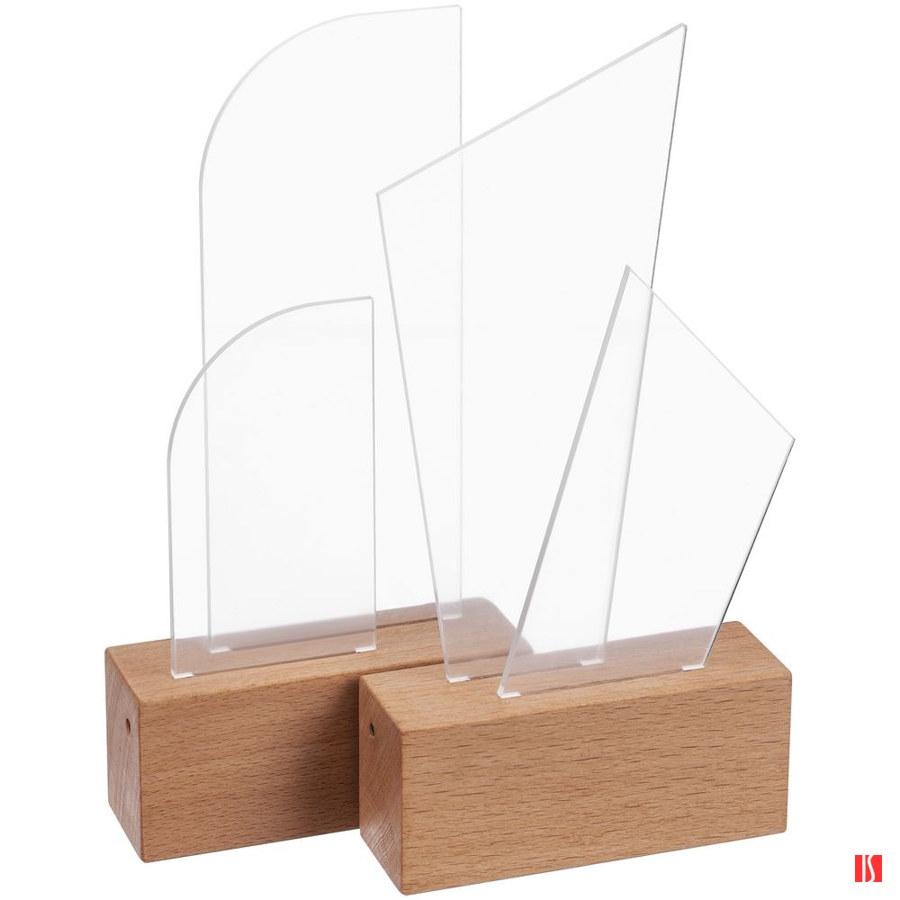 Стела Twin — это массивное основание из бука с гладкой фактурой и легкая прозрачная вставка из двух листов акрила. Идеальный баланс устойчивости и легкости, который важен не только для создания награды привлекательной формы, но и для достижения результата, который этой наградой будет отмечен.
