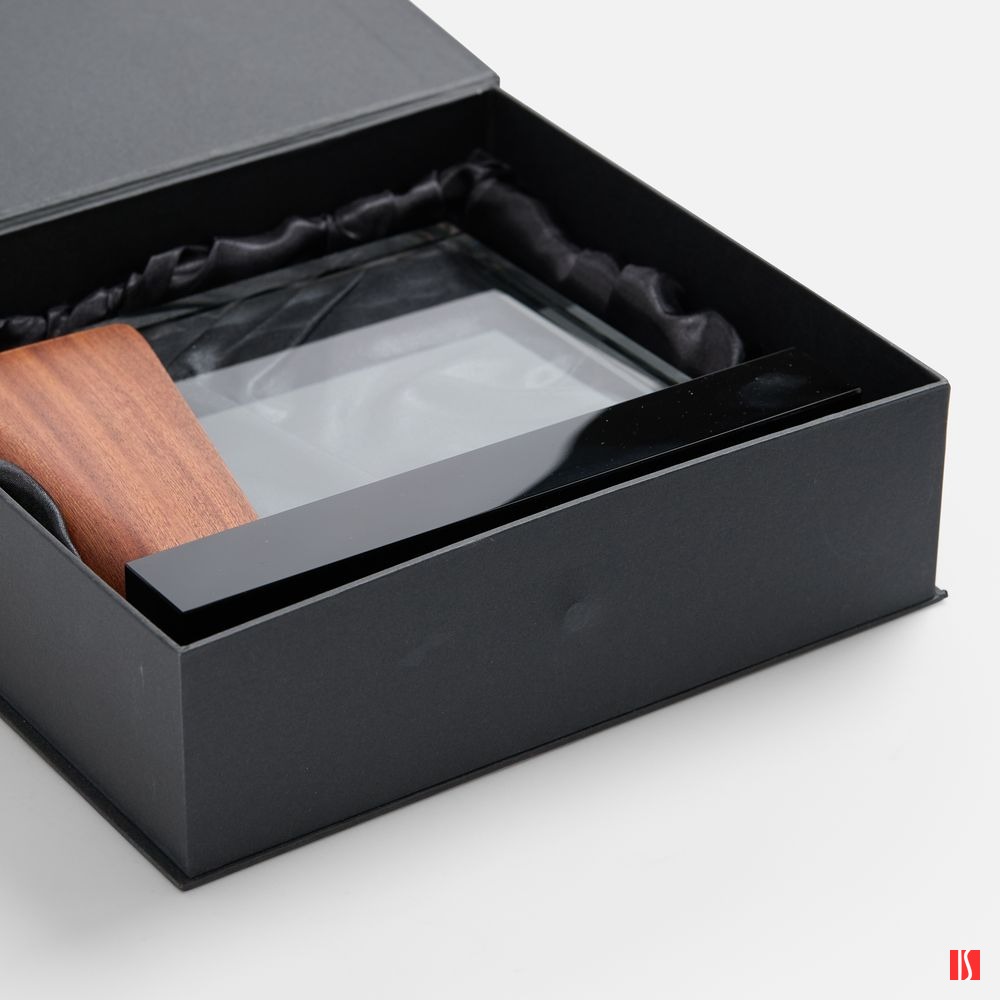 Прозрачная вставка изготовлена из стекла К9, в основе которого лежит оптическое боросиликатное стекло. Эту марку стекла отличает низкий процент посторонних включений, высокий показатель преломления и высокая прозрачность — идеальные качества для изготовления наград премиального уровня.Поставляется в подарочной коробке.