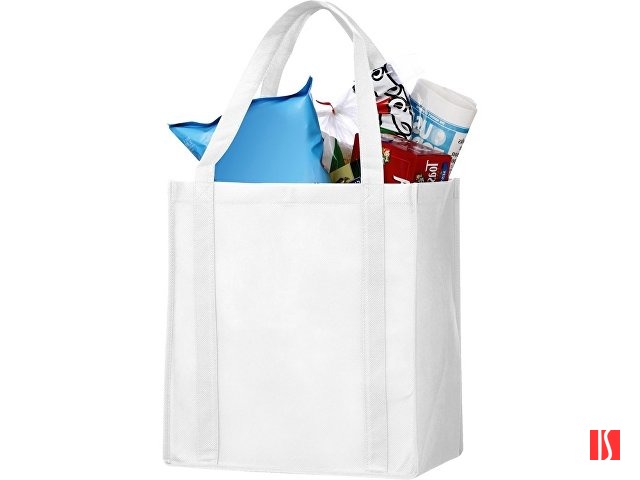 Нетканая сумка Little Juno. Открытое основное отделение, уплотненное дно и высота ручек 23,5 см. Сумка для многоразового использования, отличная альтернатива пластиковым пакетам. Нетканый полипропилен 80 г/м2. Заказать с нанесением логотипа от компании «Синтезис».