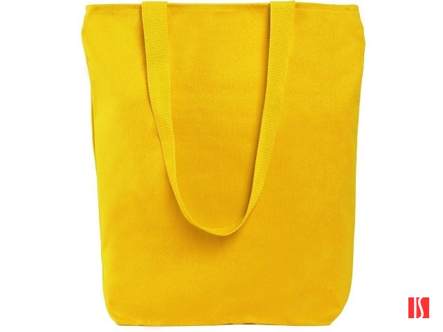 Преимущество этой сумки в наличии застежки молнии на основном отделении - ее содержимое остается закрытым. Донная складка увеличивает вместимость. Снаружи расположен карман на молнии. Парусиновые ручки в тон сумки. Заказать с нанесением логотипа от компании «Синтезис».