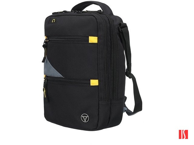 Сумка через плечо TORBER предназначена для безопасной транспортировки деловой документации и электронных гаджетов. Сумка в чёрном цвете с серыми и желтыми акцентами элегантно смотрится в городских условиях.
