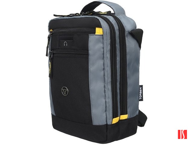 Сумка-планшет TORBER, черный/серый, полиэстер/добби, 22х10х29 см
