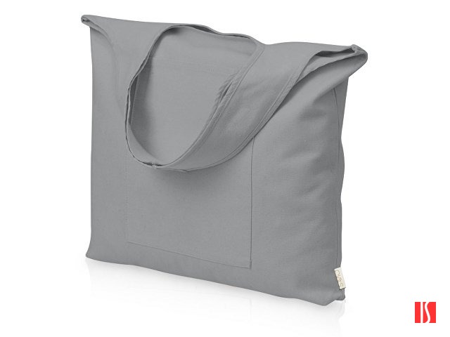 Вместительная сумка-шоппер из очень плотного переработанного хлопка с широкими лямками и большим наружным карманом 20 x 25 см спереди. Заказать с нанесением логотипа от компании «Синтезис».