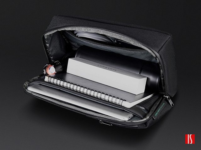 Сумка-слинг - модный и стильный аксессуар. Карман быстрого доступа к содержимому на магните разработан для большего удобства при использовании. Множество карманов внутри помогают аккуратно раскладывать содержимое. Задний потайной карман закрывается на магнит. Карман для бутылки или зонта на дне сумки. Карабин для ключей на ретракторе. Лямка с магнитной застежкой. Водостойкие материал и молнии. Спереди светоотражающий элемент для большей защиты в темное время суток. Поставляется в коробке с ручкой. Заказать с нанесением логотипа от компании «Синтезис».