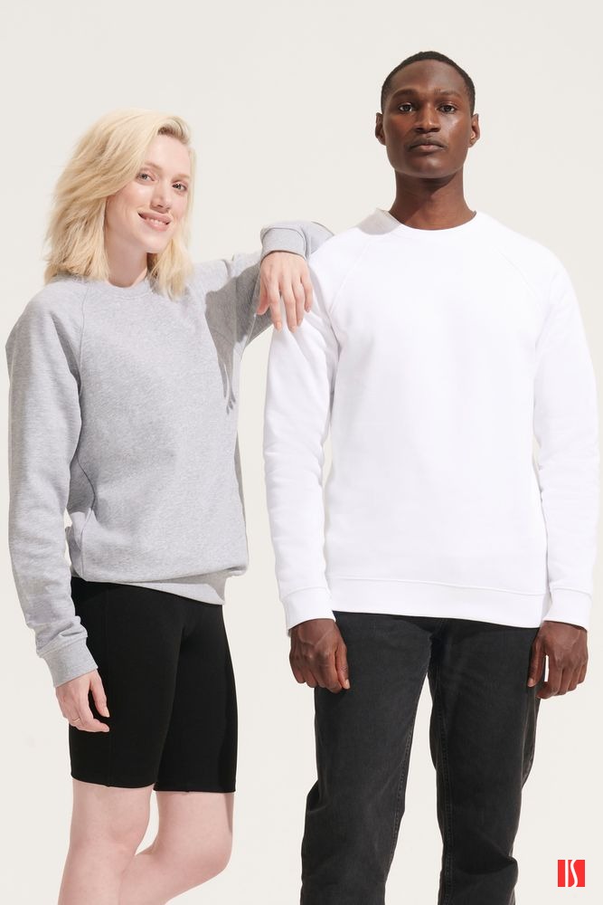 Заказать с нанесением логотипа от компании «Синтезис». Свитшот унисекс из органического хлопка. Лейбл производителя в боковом шве изнутри, в шве горловины — только бирка с размером, что позволяет удобно нанести свой логотип.