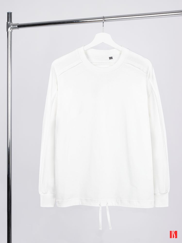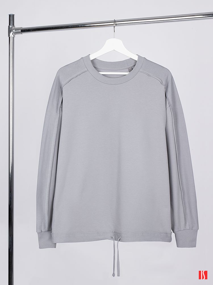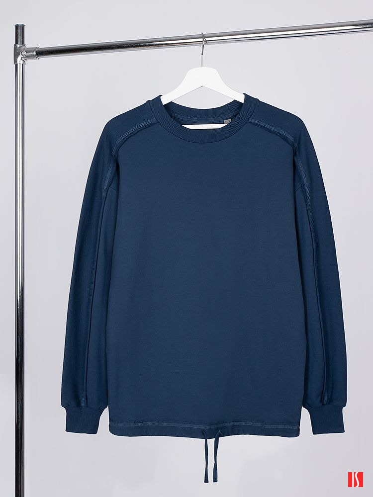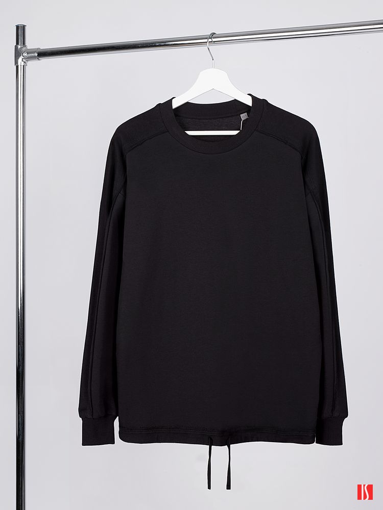 Свитшот унисекс оригинального пошива вдохнет новую жизнь в повседневный гардероб и добавит стильную нотку легкой небрежности в образ. Особая конструкция, где часть деталей — плечи и рукава — вывернута наизнанку, создает необычный притягательный эффект.