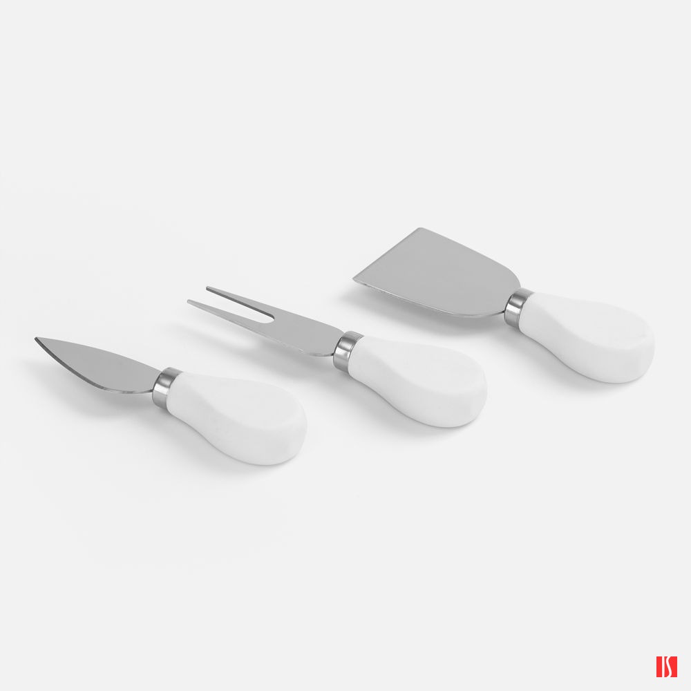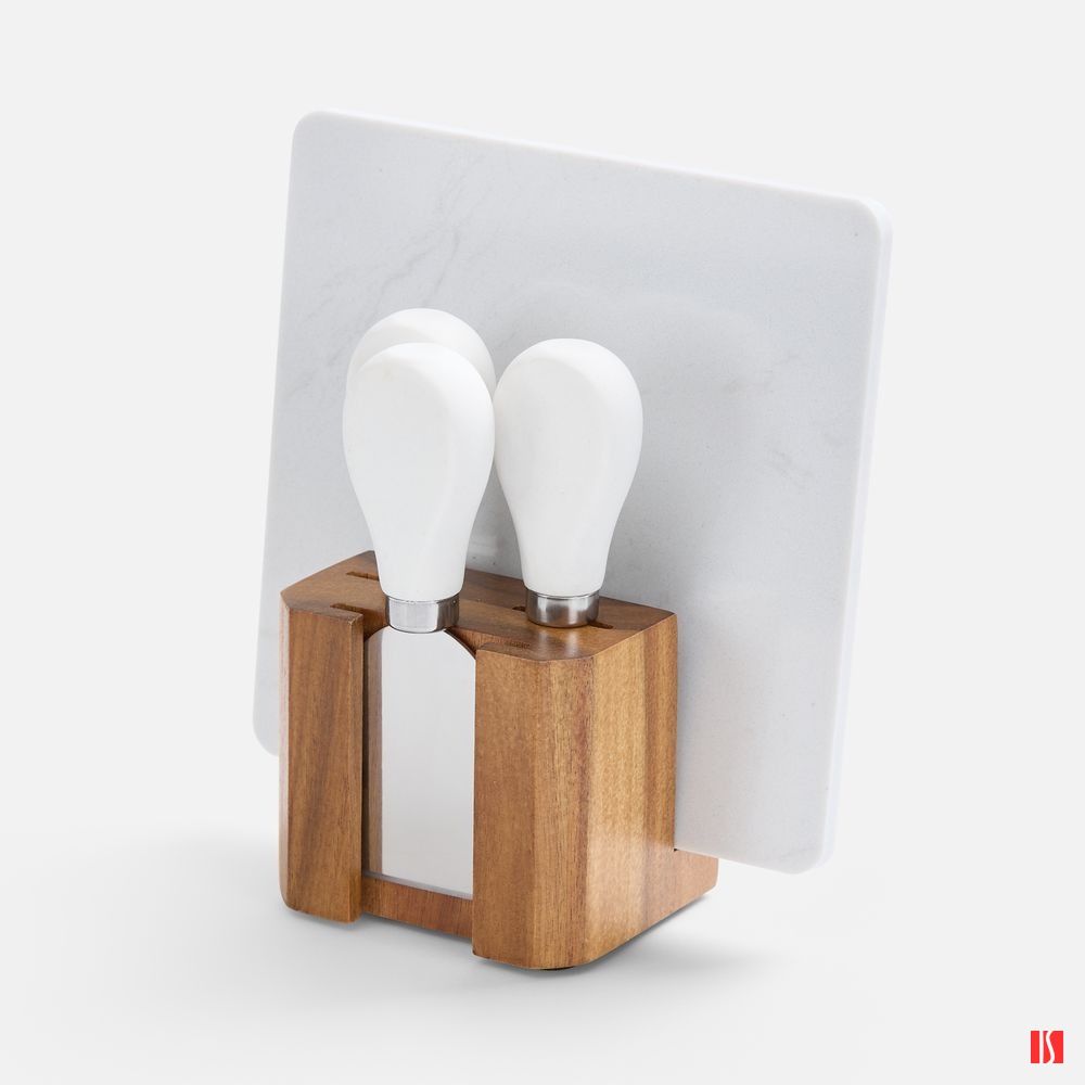 Marmara — компактный сырный набор с мраморной доской и ножами на деревянной подставке.
