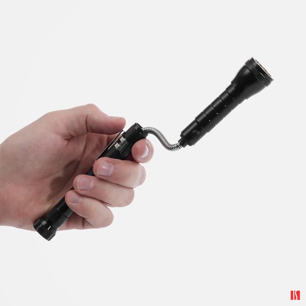 Заказать с нанесением логотипа от компании «Синтезис». Компактный фонарик Flexion — идеальное средство для освещения труднодоступных мест. Регулируемая длина и гибкое крепление лампочки позволяют направленно и точечно подсвечивать нужные зоны в самых сложных местах, например, под капотом или за мебелью. С помощью магнита на корпусе можно закрепить фонарь на металлической поверхности, освободив руки, —особенно удобно при ремонте, строительстве или работе в гараже. Магнит на излучателе поможет с легкостью достать упавшие в узкие щели металлические предметы.