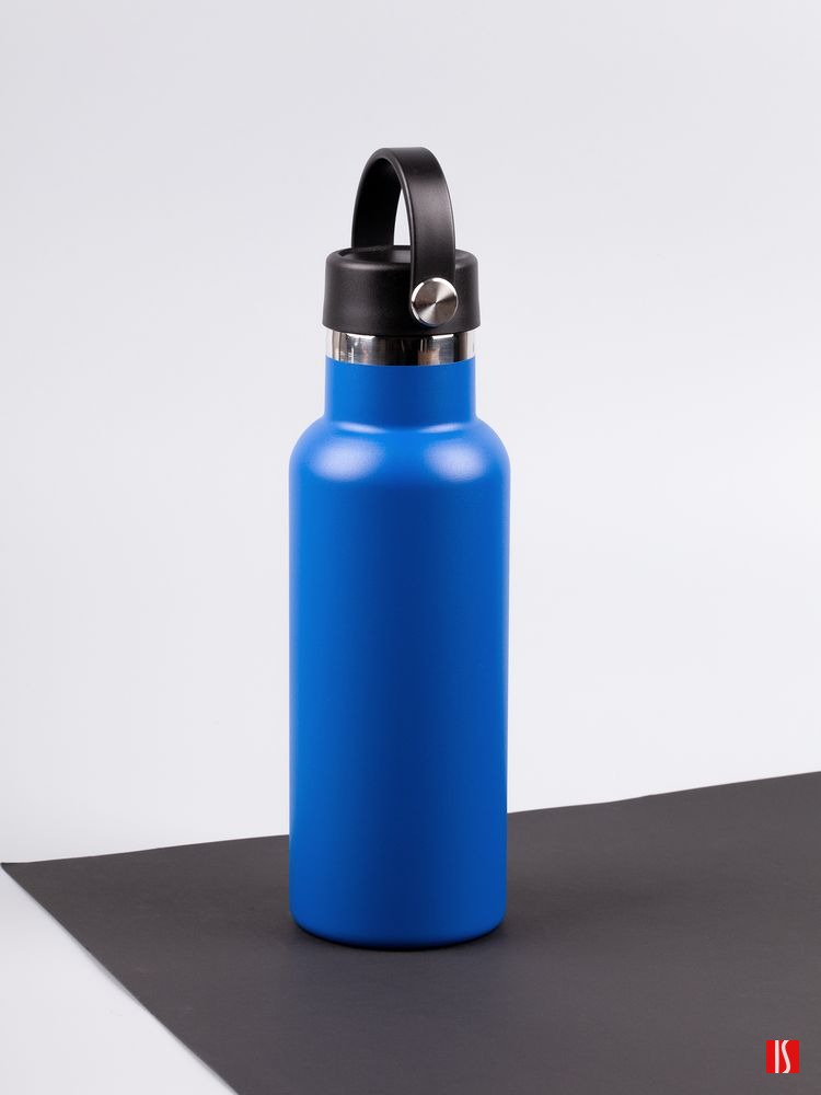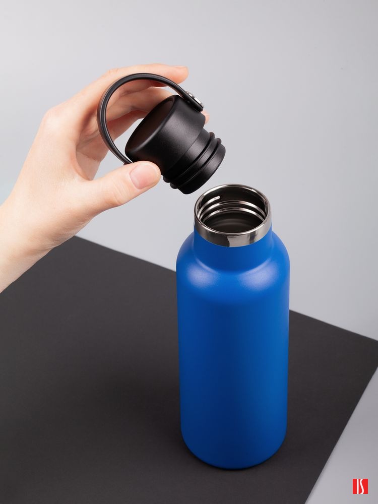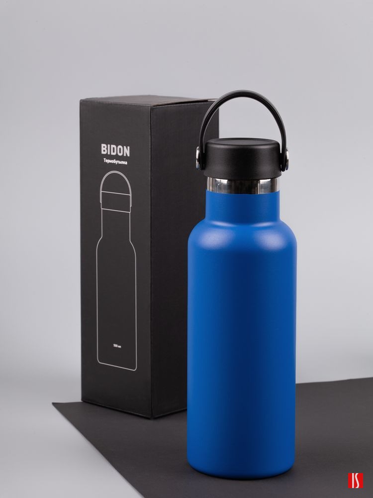 Заказать с нанесением логотипа от компании «Синтезис». Вместительная термобутылка с большой ручкой для переноски.