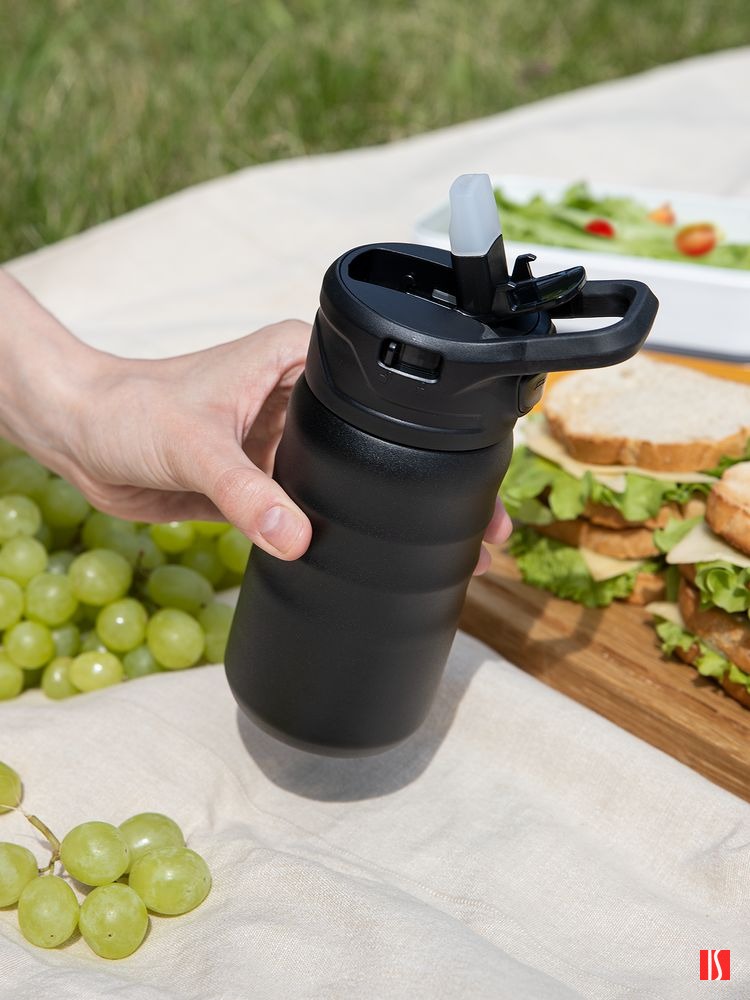 - Конструкция с двойными стенками и вакуумной изоляцией сохраняет содержимое холодным до 24 часов, горячим — до 12 часов