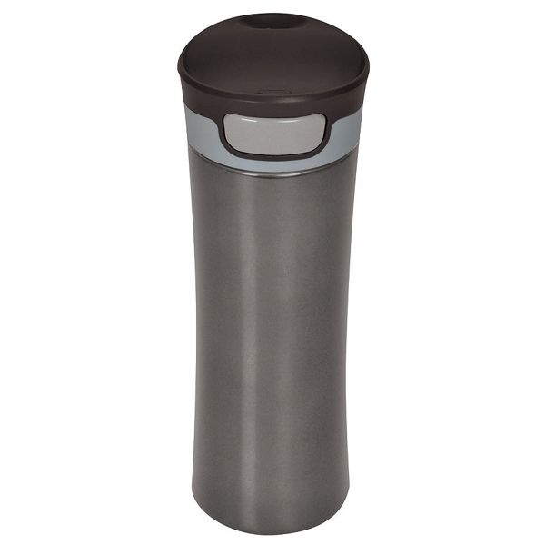 Термокружка дорожная вакуумная DISCOVER; 450 мл; серый, пластик, металл; лазерная гравировка