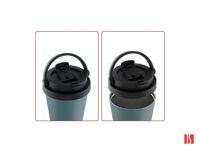 Термоизоляция не позволяет нагреваться корпусу кружки от горячих напитков, на нём не образуется конденсат от холодных. Поэтому термостакан безопасно держать в руках и ставить на любые поверхности. Такой термопосуде не нужна традиционная ручка, но для удобства переноски предусмотрена ручка на крышке. В сложенном виде она интегрируется в плоскость крышки, плотно фиксируется за счет специального выступа и не мешает при питье. В процессе выпивания напитка крышку можно не снимать – в её конструкции предусмотрен откидной клапан, который легко открывается и закрывается одной рукой. Он защищает напиток от попадания пыли внутрь, а также минимизирует влияние температуры окружающей среды, способствуя сохранению напитка горячим или холодным длительное время. В положении «открыто» клапан плотно фиксируется в плоскости крышки и не опрокидывается при питье. В крышке предусмотрены два отверстия – питьевое и воздушное для обеспечения плавного потока жидкости.