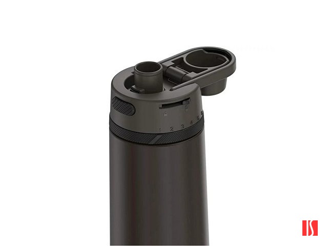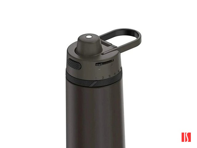 В корпус крышки-пробки встроен счётчик количества употреблённых порций воды - на боковой стороне крышки-пробки есть цифровая шкала от 1 до 6, а на вращающейся нижней части – специальная метка. Теперь не надо запоминать, сколько порций воды вы выпили – после каждой выпитой за день бутылки переместите метку к соответствующей цифре. Комфорт при питье обеспечивает поильник в виде широкой трубочки с закруглёнными краями. Диаметр питьевого отверстия позволяет использовать термобутылку не только для хранения воды, но и густых напитков, а также спортивного питания.