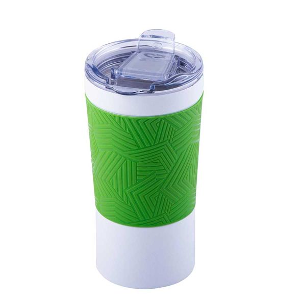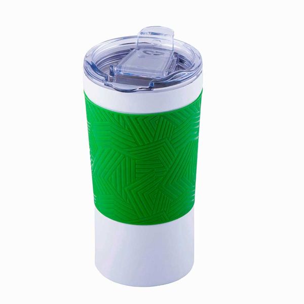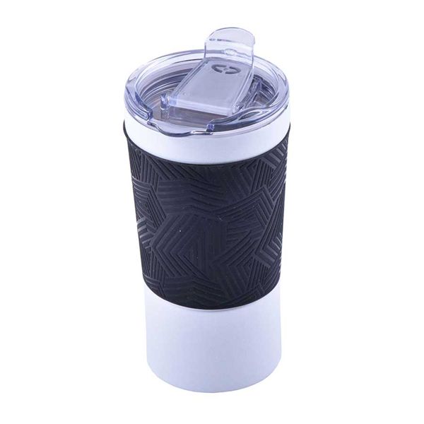 Вакуумная термокружка с покрытием "ice flower" и силиконовой манжетой.