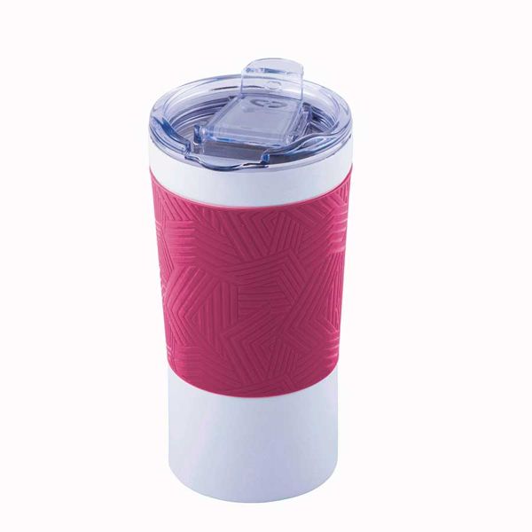 Термокружка вакуумная 'Funny" белая, красная, силикон