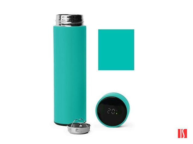Термос из нержавеющей стали, покрытый цветным soft touch, с крышкой, в которой встроен термометр и LED дисплей, показывающий температуру внутри термоса. Объем: 500 мл. Упаковка: каждый термос в крафт коробке. Заказать с нанесением логотипа от компании «Синтезис».