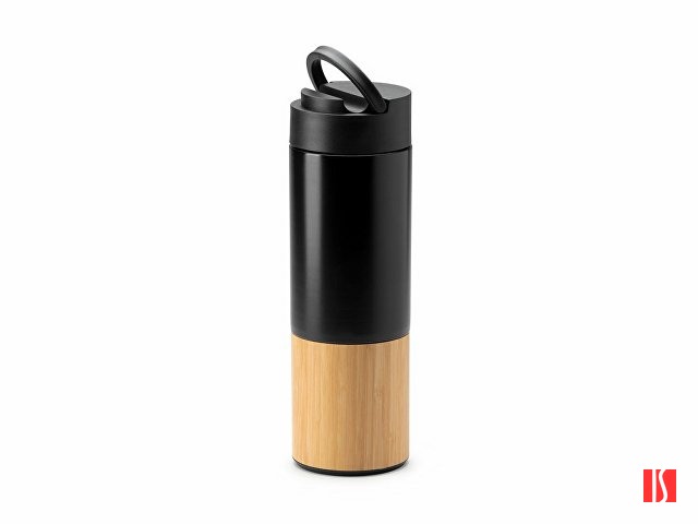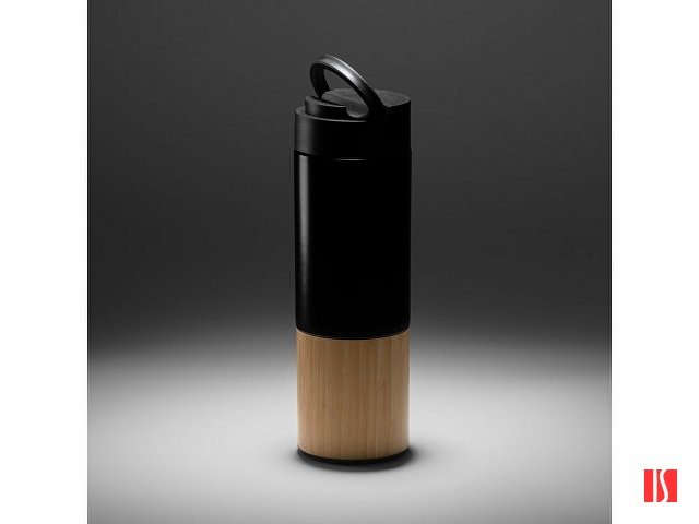 Термос из нержавеющей стали 304 и деталями из бамбука, 450 мл, черный/натуральный