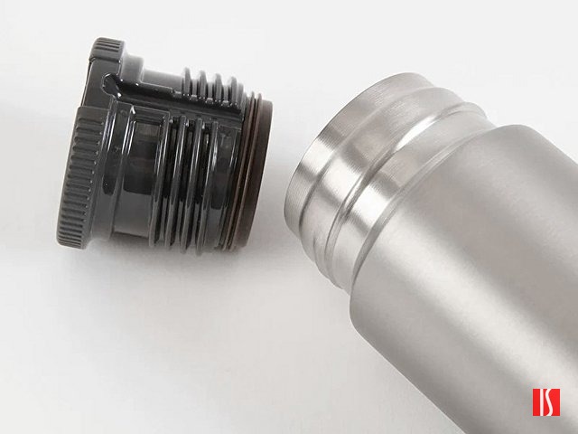 Практичный термос удобен в использовании – он оснащён винтовой пробкой и крышкой, которую можно использовать как чашку. Чтобы открыть термос для наливания напитка в крышку, не потребуется вывинчивать пробку полностью. Особенность пробки – наличие двух разных по размеру пазов для обеспечения широкого или узкого потока жидкости. Указатели на верхней части пробки подскажут широту струи напитка и направление потока.